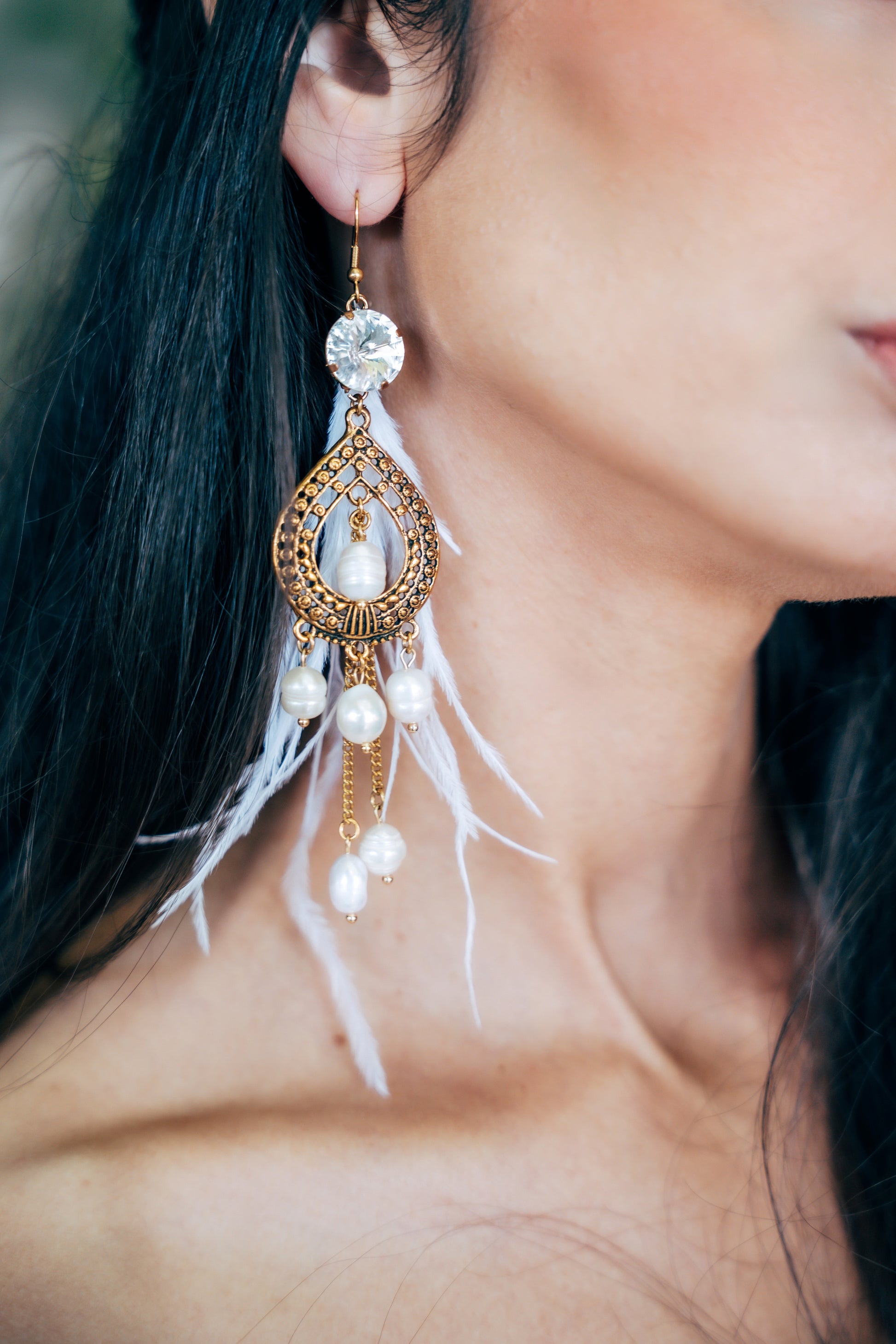 Our boho earrings are handmade and one-of-a-kind, crafted with carefully selected materials like high-quality stainless steel, adorned with semi-precious stones, Swarovski crystals, zircon accents, natural pearls and delicate feathers that move gracefully with every step.